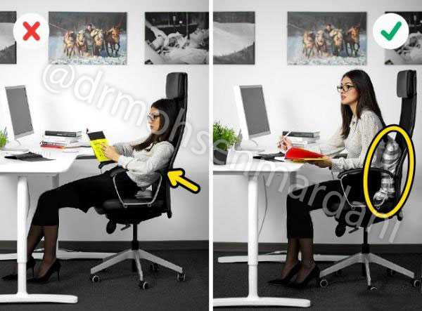 صندلی شما حتما باید دارای پشتی با انحنای استاندارد باشد.کمرتان نباید همانند یک علامت سئوال به پشت تکیه داده شده باشد.