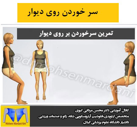 در حالی که پشت به دیوار ایستادهاید، پای خود را از دیوار در حدود 45سانتی متر فاصله دهید. سپس بدن خود را به حالت چمباتمه زدن پایین بیاورید. همانند تمرین لانج، هنگامی که میتوانید عضلات خود را احساس کنید، این حرکت را متوقف کنید. هر دو پای خود را به جلو سمت نگه دارید و زانوهای خود را بر فراز مچ پا نگه دارید. به مدت15-20 ثانیه بمانید و 3-5 بار آن را تکرار کنید. برای تمرین اختصاصی عضلات چهار سر داخلی میتوانید در طول تمرین، یک توپ والیبال را بین زانوهای خود فشار دهید. این تمرین را میتوانید با یک توپ بدنسازی نیز انجام دهید. به توپ تکیه دهید، به طوری که کمر شما بر وسط توپ قرار بگیرد .