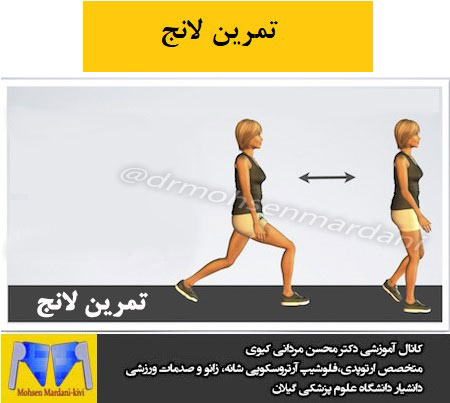 با پای راست خود به عقب گام بردارید و وزن بدن خود را به سمت زمین متمایل کنید. هنگامی که عضلات خود را احساس کردید، این حرکت را متوقف کنید. آن را برای 10-15 ثانیه نگه دارید. هر دو پای خود را به سمت جلو نگه دارید و زانوی چپ را بر فراز مچ پای خود نگه دارید . اجازه ندهید زانوی شما جلوتر از انگشتان شما قرار بگیرد. در صورت نیاز از یک دیوار برای کمک به تعادل خود استفاده کنید. این تمرین را 4-6 بار در هر طرف تکرار کنید .