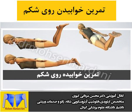 موقعیت شروع : جهت انجام ورزش برای درد زانو بر روی شکم دراز بکشید و بالا تنه خود را از زمین بلند کنید. زانو و پای خود را کمی از روی زمین بلند کنید. (همانطور که در تصویر پایین نشان داده شده است). تصور کنید به بالای سر خود رسیدهاید و همزمان کف پاهای شما از یکدیگر فاصله دارند. بازوهای خود را صاف نگه دارید و کتف شانهها و رانهای خود را به هم فشار دهید .