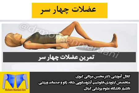 یک بالش را از سمت طول آن، زیر زانوی خود قرار دهید. انگشتان پای خود را به عقب بکشید و پای خود را برای له کردن بالش، به پایین فشار دهید. این وضعیت را به مدت 10 ثانیه نگه دارید و تا 20 بار آن را تکرار کنید. در طول این تمرین شما باید ماهیچههای ران و سرین خود را احساس کنید. برای شروع، نیرو و تلاش ملایمی را اعمال کنید و پس از آن تلاش خود را به تدریج افزایش دهید. این ورزش برای تقویت زانو را میتوانید به صورت دراز کشیده (مانند تصویر زیر)، یا در حالت نشستن بر صندلی راحتی، یا تکیه بر دیوار انجام دهید .
