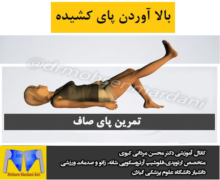 همانطور که برای عضلات چهار سر انجام دادید، در این ورزش زانو نیز ران خود را سفت کنید و انگشتان پا را به عقب بکشید، سپس همزمان با حفظ سفتی عضلات، به آرامی پای خود را 45 سانتیمتر بالا ببرید. سپس پای خود را به آرامی پایین بیاورید، عضلات خود را کمی شل کنید، سپس با سفت کردن ران خود، انگشتان پای خود را به عقب بکشید و این عمل را برای کاهش زانو درد 20 بار آن را تکرار کنید .