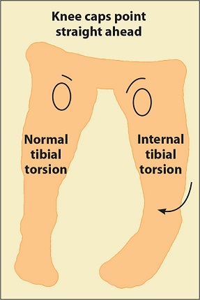 چرخش استخوان تیبیا به داخل در همه بچه ها تا سن دو سالگی تا حدودی وجود دارد که با بالا رفتن سن این چرخش کاهش میابد و منظور از این بیماری وقتی است که این چرخش بیش از حد طبیعی شود .