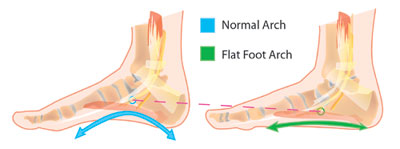 - کف پای صاف یا افزایش قوس کف پا