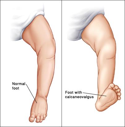کالکانئووالگوس در 5 درصد نوزادان دیده شده و ممکن است یکطرفه یا دوطرفه باشد. در نوزادان مبتلا به کالکانئووالگوس میتوان پای بچه را با دست به حالت طبیعی برگرداند ولی با رها کردن، پا دوباره به حالت اول برمیگردد. این بچه ها ممکن است در سنین بالاتر صافی کف پا داشته باشند .