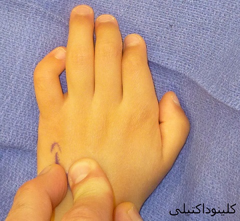 - یک انگشت اضافه که با یک پایه نازک از کنار دست آویزان است