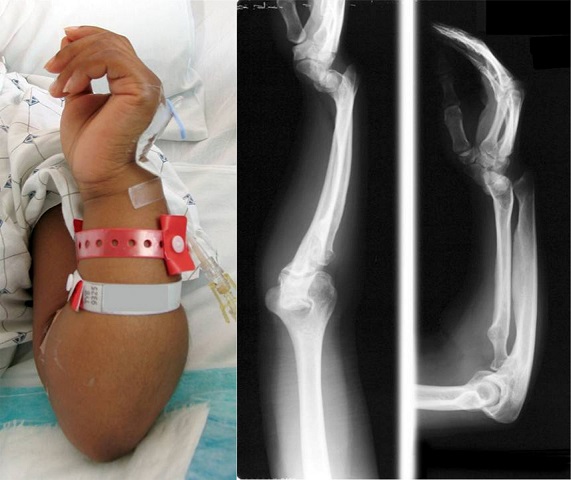 ر) شکستگی صفحه رشد انتهای پایینی استخوان رادیوس در مچ دست