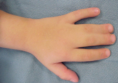 - یک دست با ظاهر معمولی با یک شست و پنج انگشت دیگر