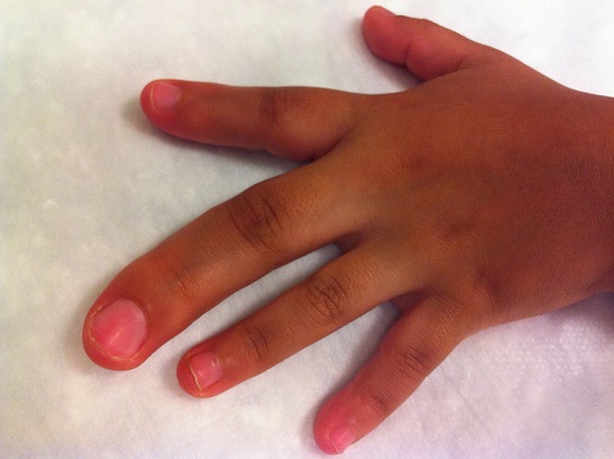 سین داکتیلی معمولا بدون درد است ولی بندرت و در موارد خیلی شدید که ناخن به داخل نوک انگشتان به هم چسبیده فرو میرود ممکن است عفونت خفیفی در ناحیه بوجود آید که بچه را کمی اذیت کند .
