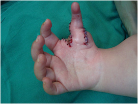 بعد از جراحی معمولا پزشک جراح دست بچه را در یک آتل گچی بلند میگذارد که تا زیر بغل او میرود. این آتل برای سه هفته در محل باقی میماند و هدف از آن اینست که دست بیحرکت بماند و از گرافت ( پیوند پوستی) محافظت شود. بعد از سه هفته آتل خارج میشود و اسپلینت مخصوصی در بین انگشتان جدا شده بیمار برای شش هفته دیگر گذاشته میشود تا انگشتان از هم باز بمانند .