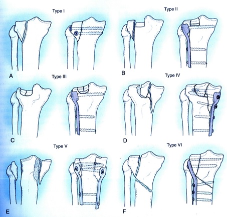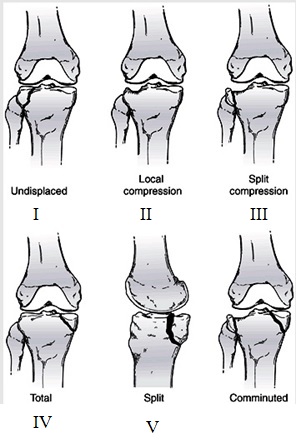 تقسيمبندي Schatzker اين شكستگي ها را شامل 6 گروه تقسيم ميكند: