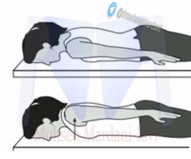 تصویر دوم: بدن بر روی میز باشد و دست آسیب دیده را تا امتداد سرشانه آورده و دوباره برگردانید