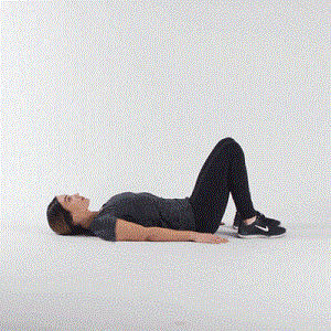 ۱ - روی زمین دراز بکشید. ستون فقرات باید روی زمین قرار بگیرد، زانوها نیز باید در زاویه ۹۰ درجه خم شوند، کف پاها صاف روی زمین باشد، دست ها نیز صاف در دو سمتتان باشد و کف دستها رو به زمین باشد .