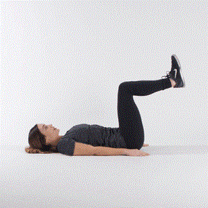۱ - در حالی که کمر روی زمین قرار دارد و زانوها ها خم است طوری که ران ها عمود بر زمین باشند و ساق پاها موازی با زمین حرکت را شروع کنید .