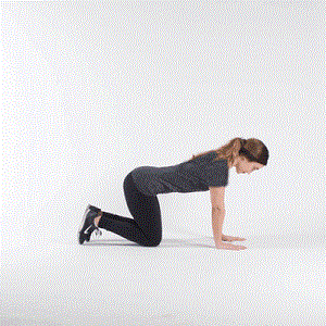 ۱ - با قرار دادن مچ دست ها زیر شانه ها حرکت را روی چهار دست و پا شروع کنید. کمر باید صاف و گردن باید در حالت خنثی قرار بگیرد .