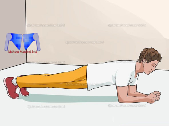 این تمرین عضلات اصلی را قوی تر می کند و کمردرد را تسلی می دهد. کف پاها و دست ها را روی زمین بگذارید و کمر را ازسطح زمین بلند کنید و چندثانیه مکث کنید.