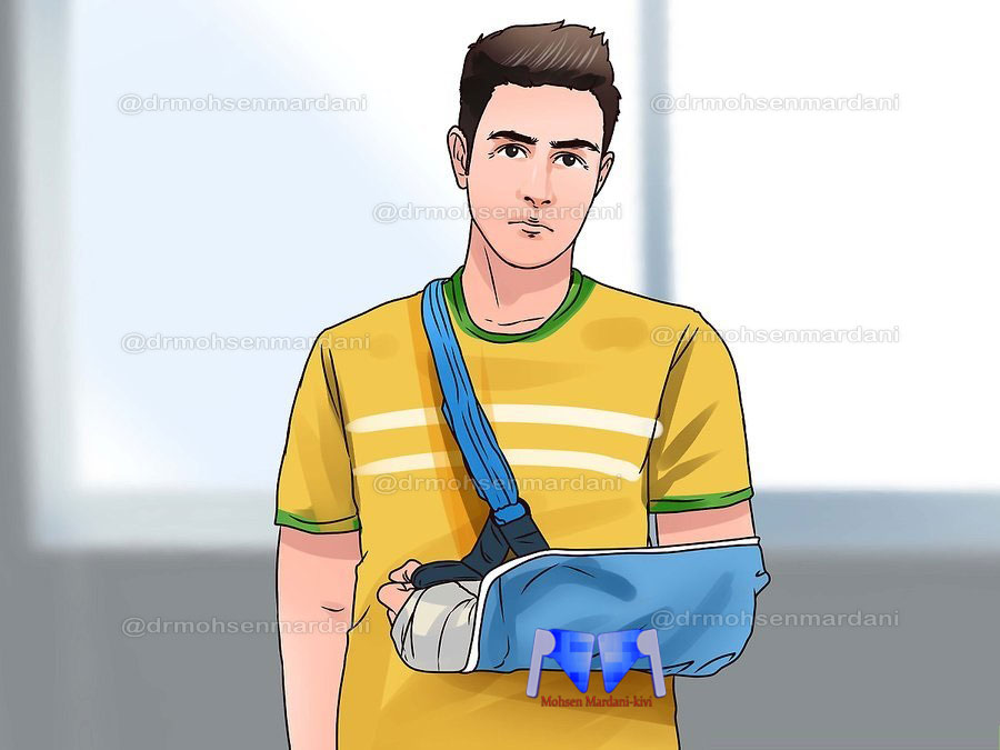 • اگربه دستبند های آماده دسترسی ندارید یک حوله یا لباس را زیر دست قرار دهید و انتهای پارچه را به دورگردن گره بزنید بی حرکت نگه داشتن دست از آسیب های بیش تر جلوگیری می کند و اغلب باعث کاهش درد می شود .