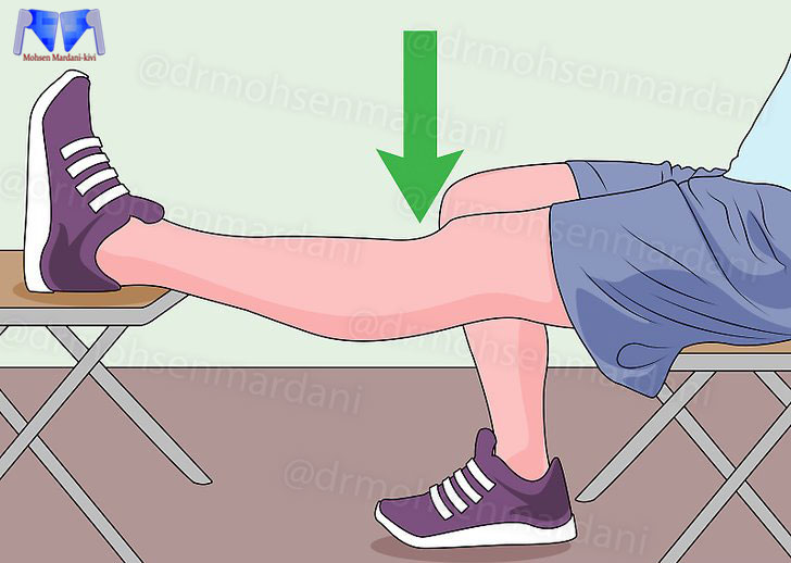 • روی یک صندلی محکم بنشینید با پاهای خم شده یکی از پاها را به آرامی بلند کنید تا به طور کامل صاف شود قبل از اینکه پایین بیاورید پا خود را 5 ثانیه نگه دارید .